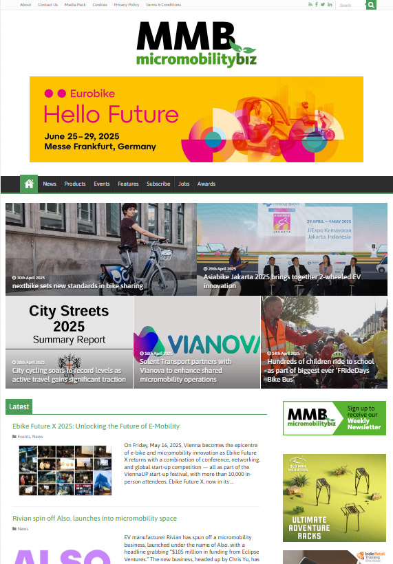 An offshoot of industry-leading cycle trade magazine BikeBiz – established in 1996 – MMB focuses on sustainable transport solutions, from e-bikes and e-scooters to bike-sharing and hire schemes. The service offers a free weekly newsletter, delivering the latest updates directly to readers’ inboxes, from market trends and product updates to Government initiatives and evolving legislations.
